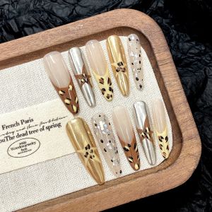 8. 【327】French Leopard Nail Kit DIY Leopard Patterns & Shiny French Accessories