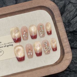 1. 【2787】New Year Short Nails Nail Kit Shiny Gold Patterns & DIY Lucky Accessories