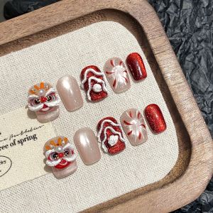 11. 【2723】Red Lion Dance Nail Kit Shiny Lion Patterns & DIY Festive Accessories