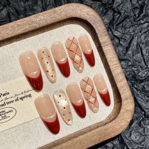 10. 【Multi-Nail Type】Burgundy French Nail Art DIY French Tips & Shiny Red Accessories