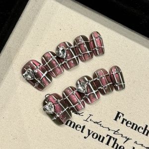 3. 【2383】Checkerboard Heart Nail Kit Shiny Grid Patterns & DIY Cute Accessories