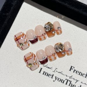 6. 【2424】Chocolate Plaid Nail Art Shiny Grid Patterns & DIY Sweet Accessories